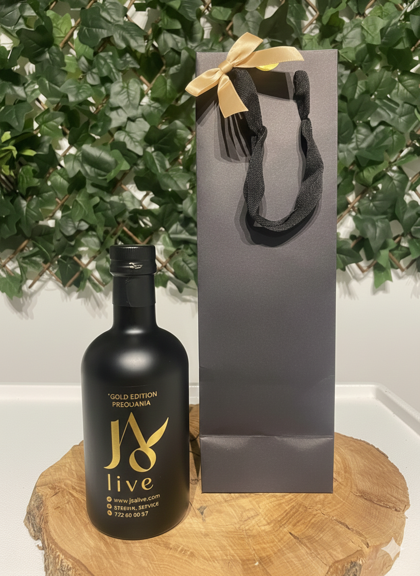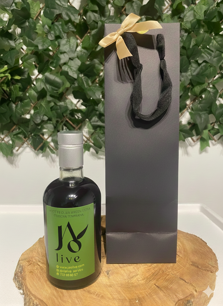 Diseño Armonioso: Discreto y elegante, permite que el diseño de la botella de JAOlive siga siendo el protagonista, mientras el logo de la marca se muestra sutilmente en la parte frontal o lateral.